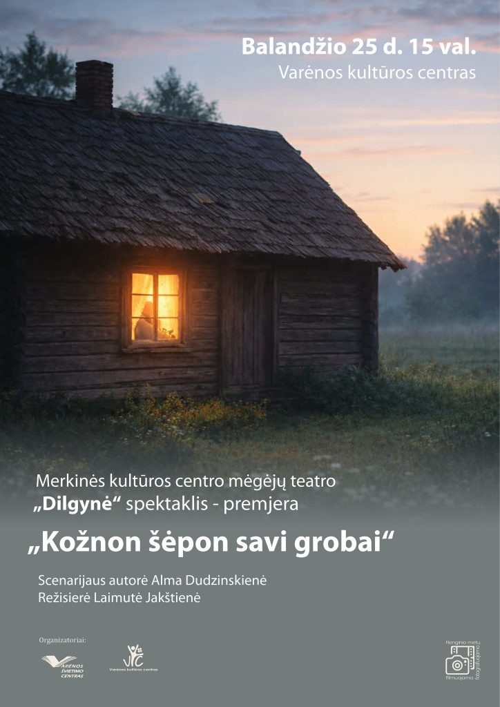 Kviečiame Jus į Merkinės kultūros centro mėgėjų teatro „Dilgynė“ spektaklio premjerą „Kožnon šėpon savi grobai“!