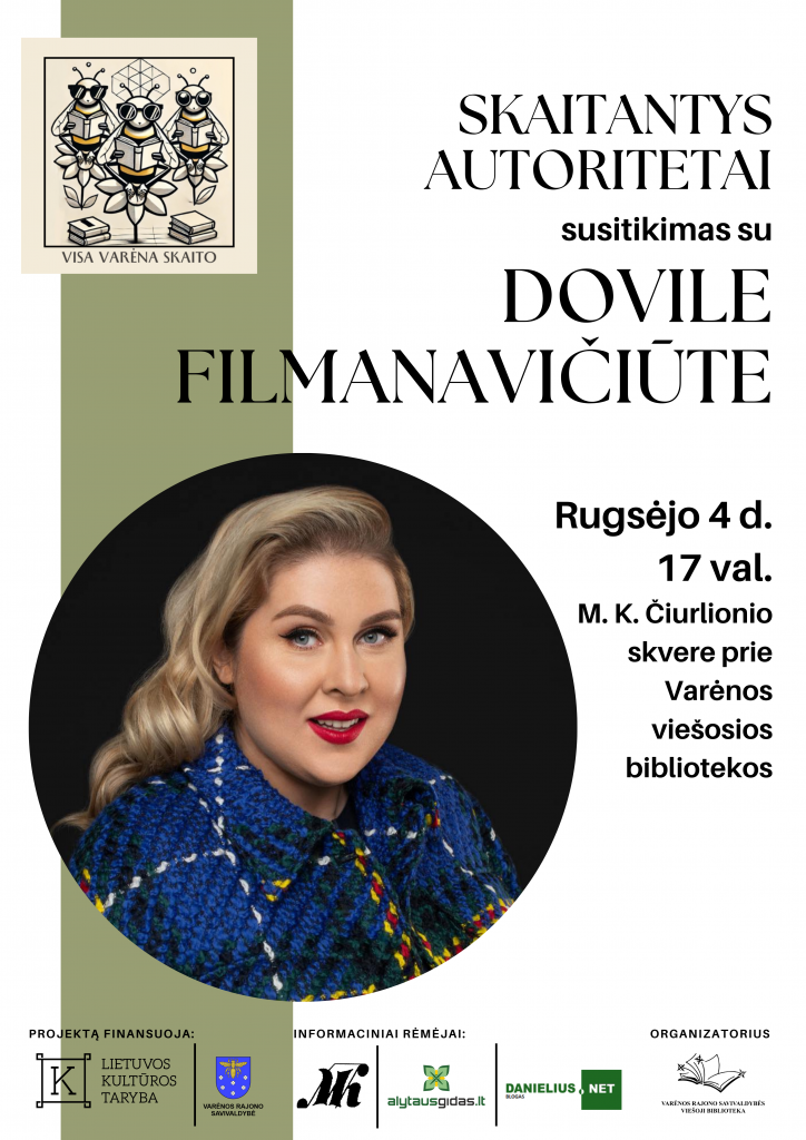 Rugsėjo 4 d. „Skaitantys autoritetai“ Varėnoje: susitikimas su Dovile Filmanavičiūte